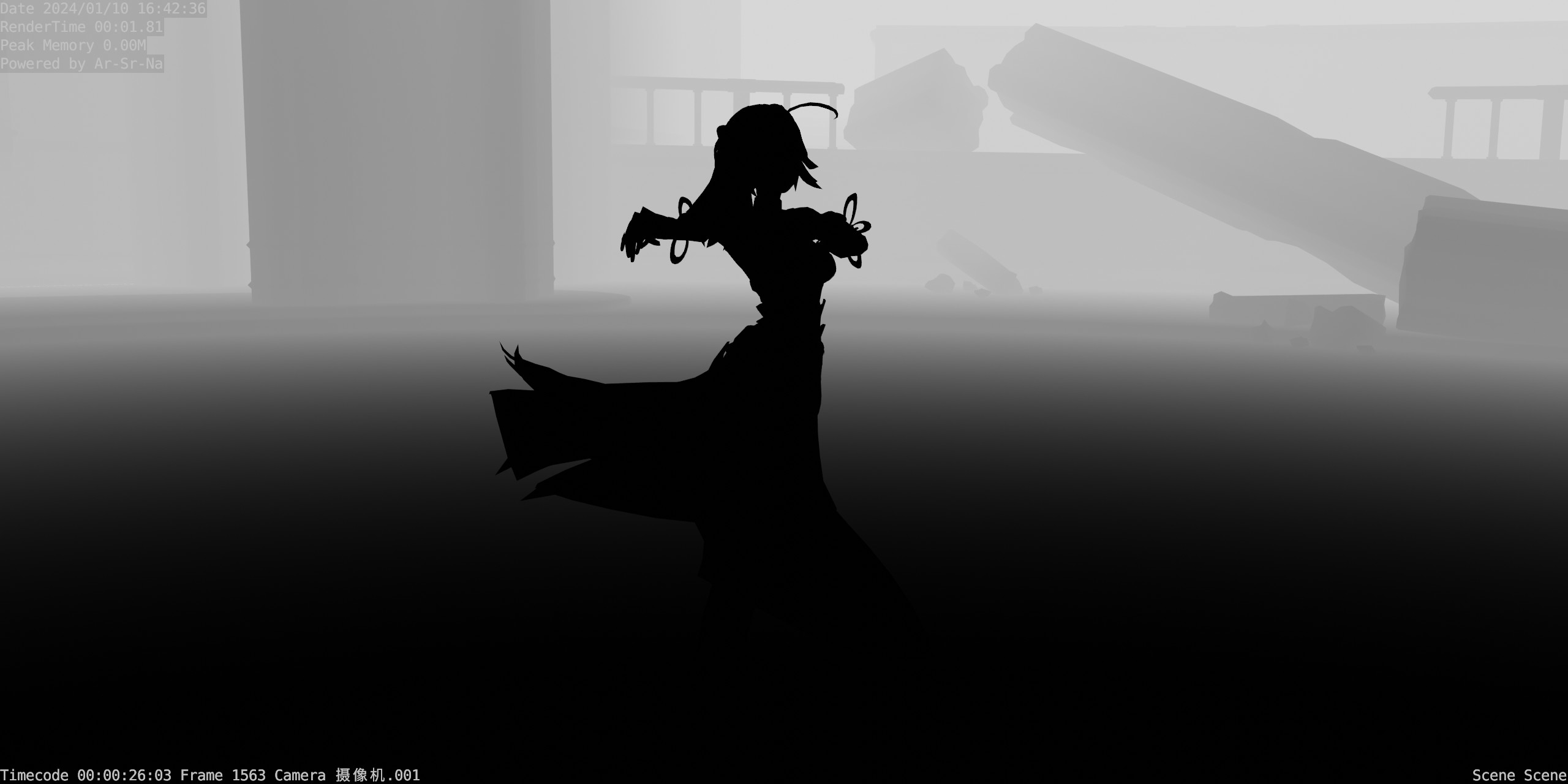 - [3]测试使用工程为 loco mmd,渲染器为eevee,采样率64进行30帧渲染,数据为第一帧所需要的时间